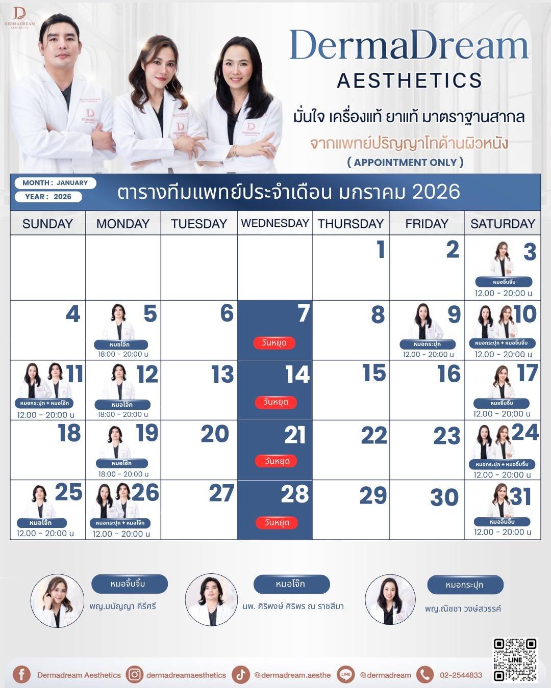 ตารางแพทย์ประจำเดือน กุมภาพันธ์ 2569